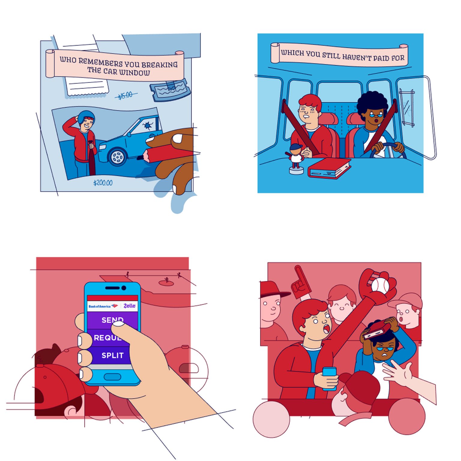 Sometimes even your closest friends aren’t great at paying you back. In this campaign for Bank of America, NL describes four familiar personalities we all deal with when it comes to money, through clean and graphic animation. Collaborating with designer Blood Bro’s to create the look, the NL team brought this signature style to life across a full range of web platforms.