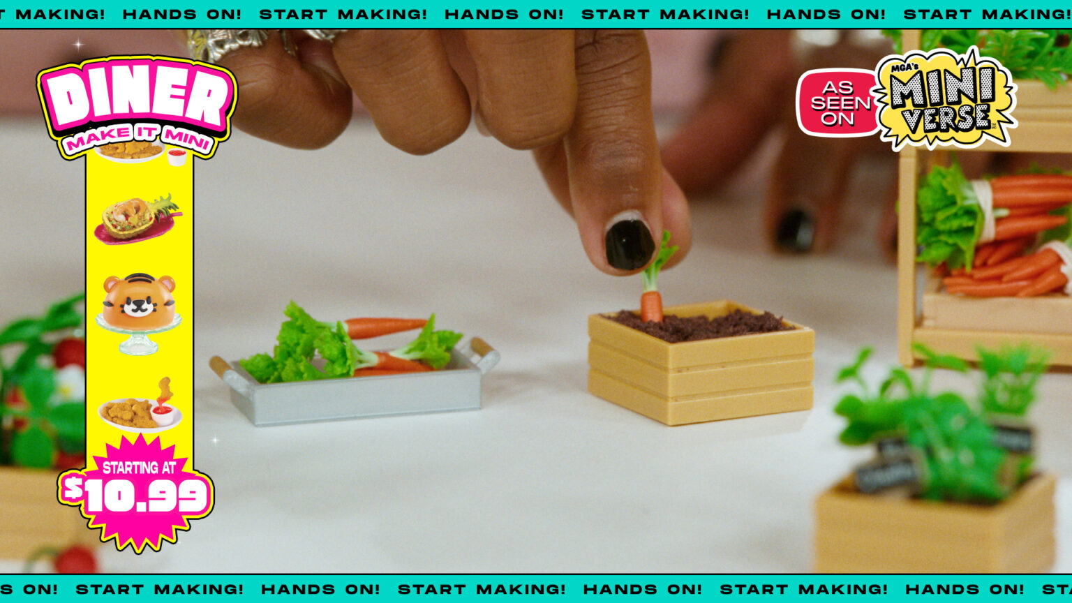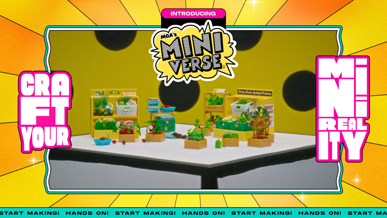 We had a blast designing and animating the motion graphics on this campaign of 3 spots for MGA Miniverse. The design style takes influence from old-school infomercials and Japanese variety show graphics, with a modern edge and loud aesthetic. Each spot showcases an influencer delighting in a couple sets of MGA’s “Make it Mini” collectibles, with product marquees, fun transitions, and graphic popups throughout!