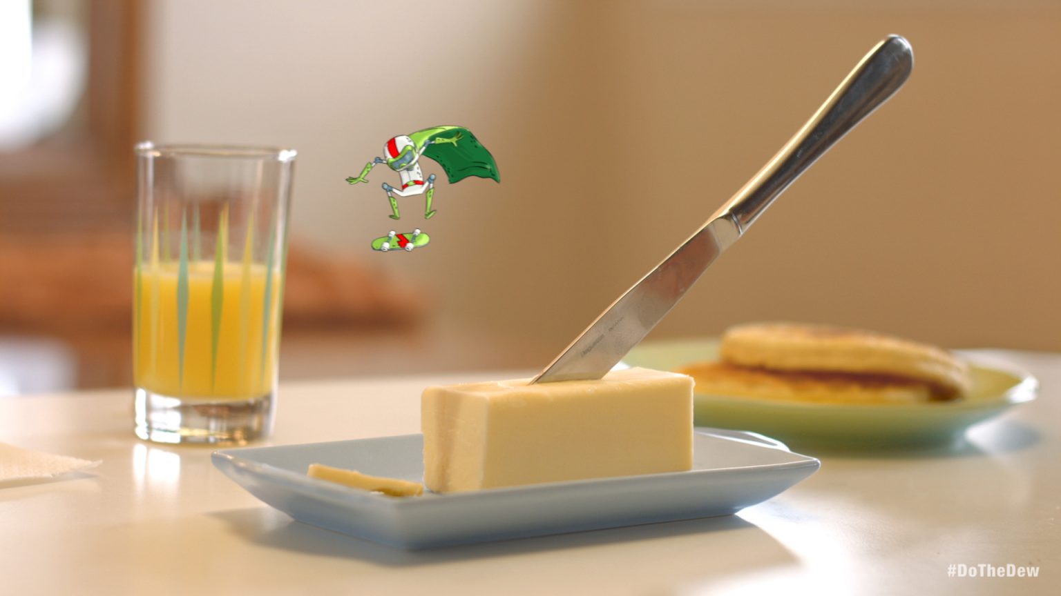 As part of the “Dewdles” series, NL and Lil’ Dewd make the most of their breakfast. That kickflip is smooth like butter.