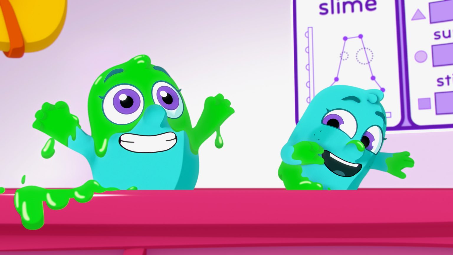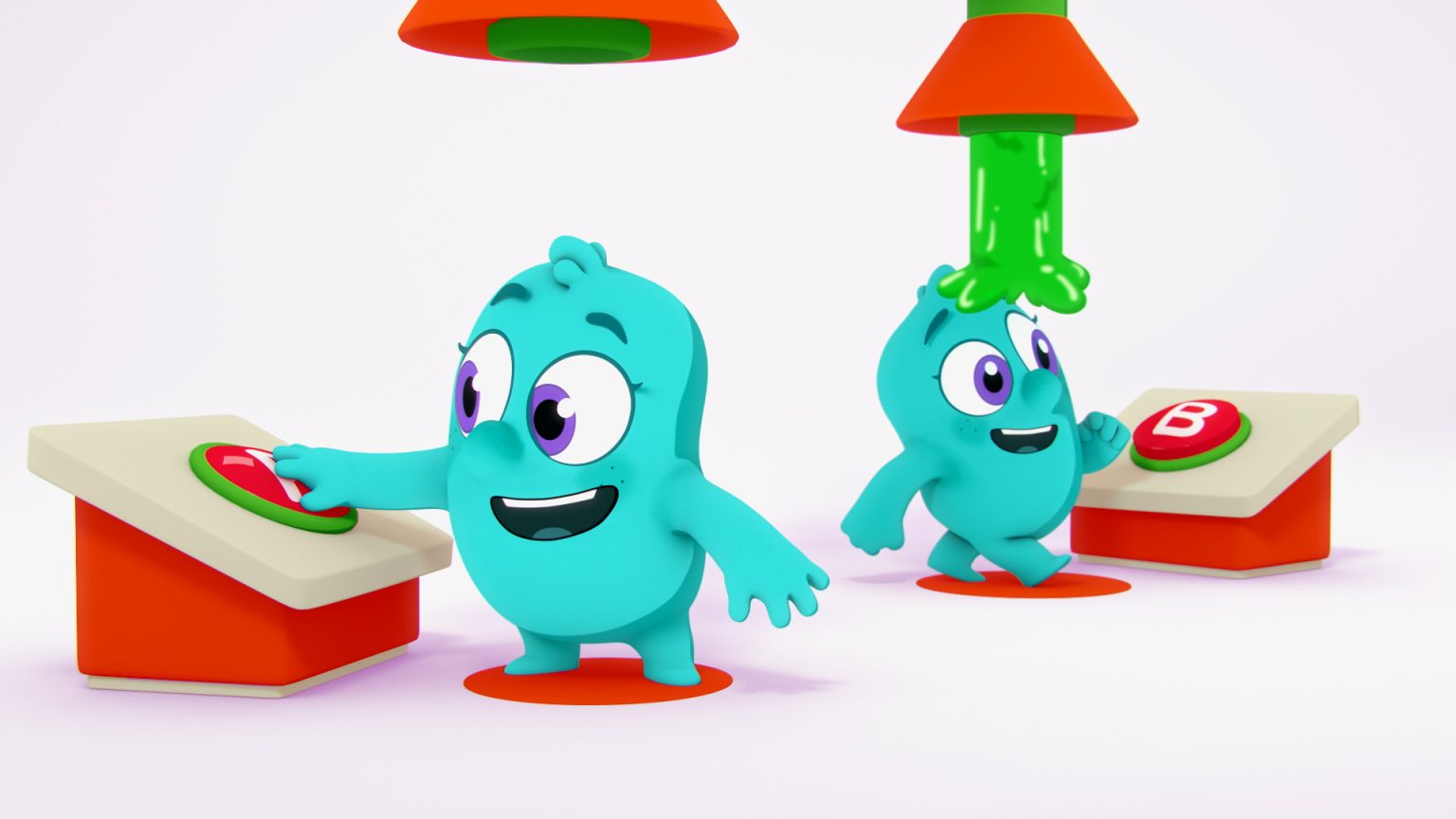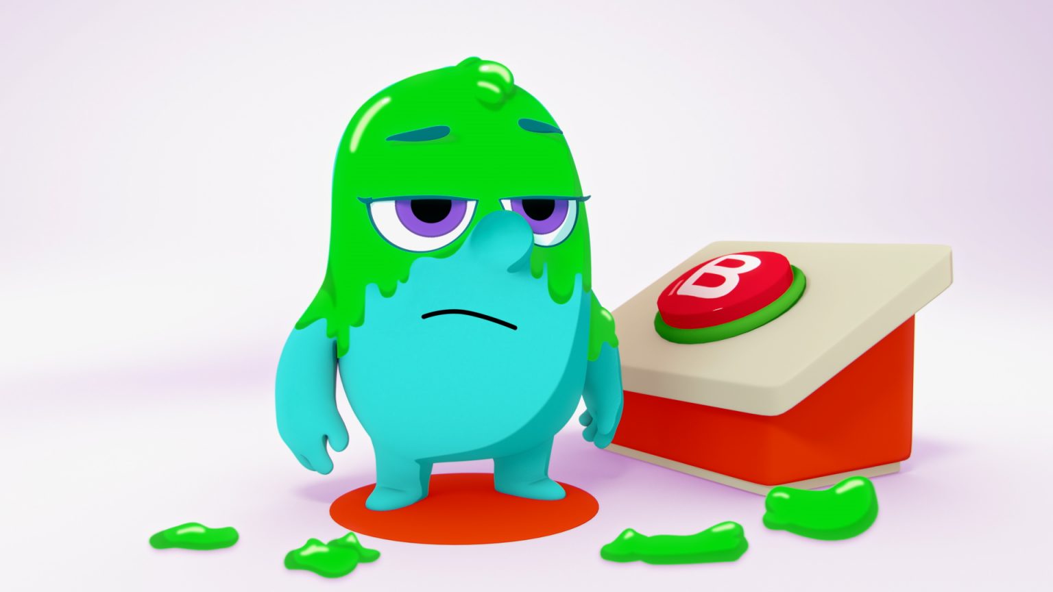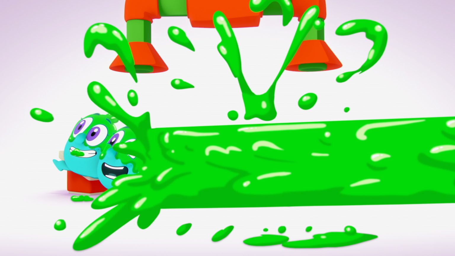 We approached the Noggin characters and props in 3D, but did all slime in 2D. It was a ton of fun to mix mediums and create a playful, clean, and graphic style for this project.