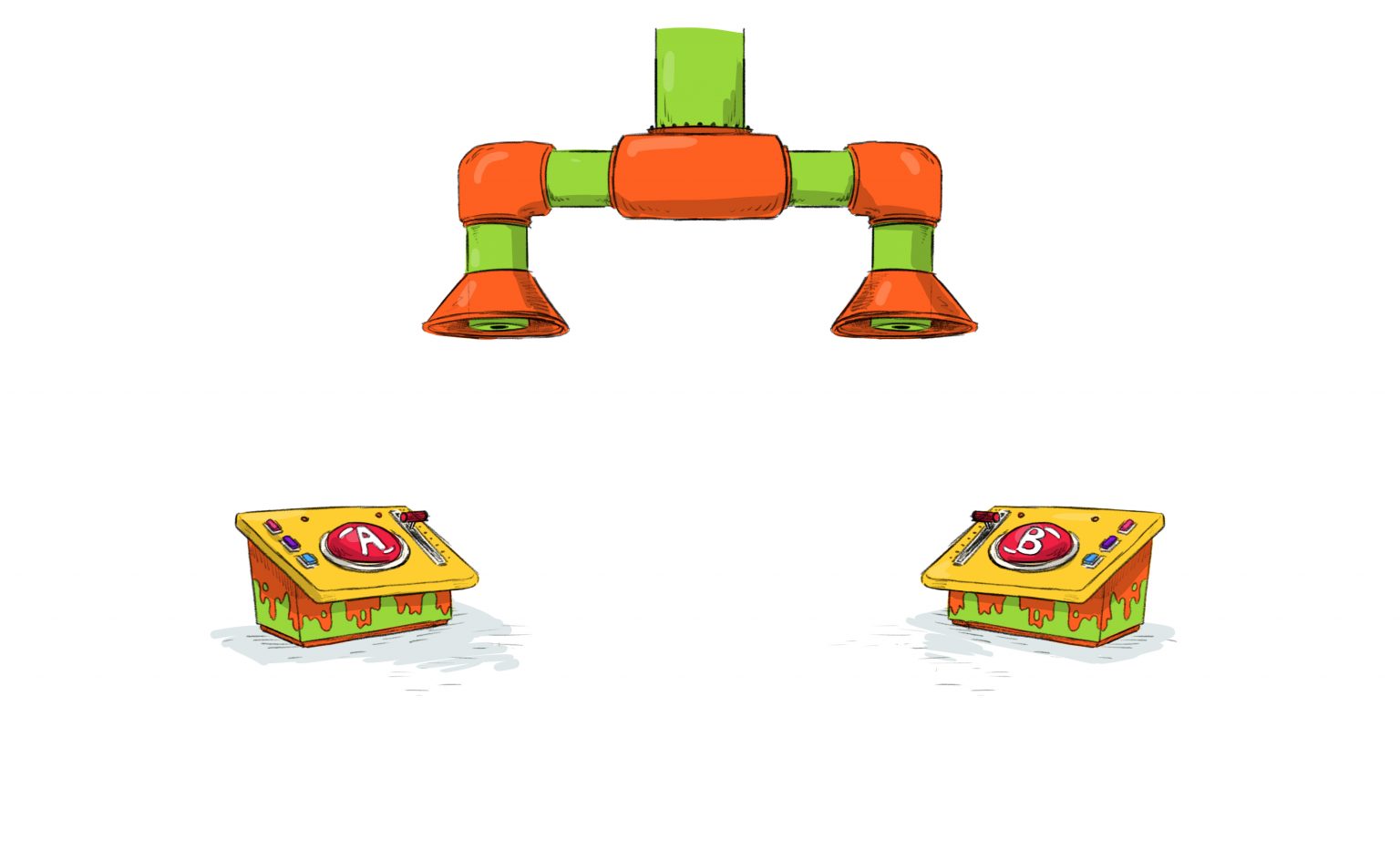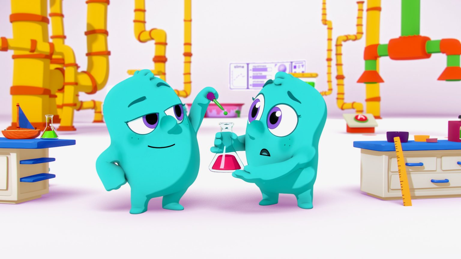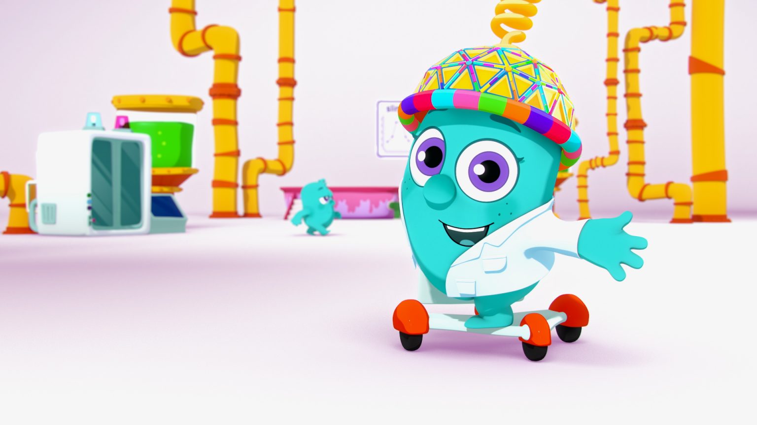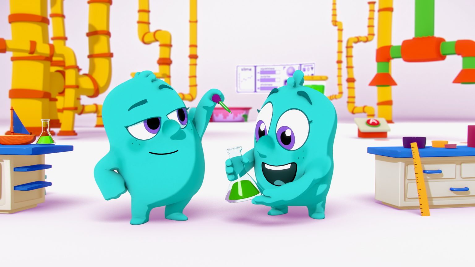 We approached the Noggin characters and props in 3D, but did all slime in 2D. It was a ton of fun to mix mediums and create a playful, clean, and graphic style for this project.