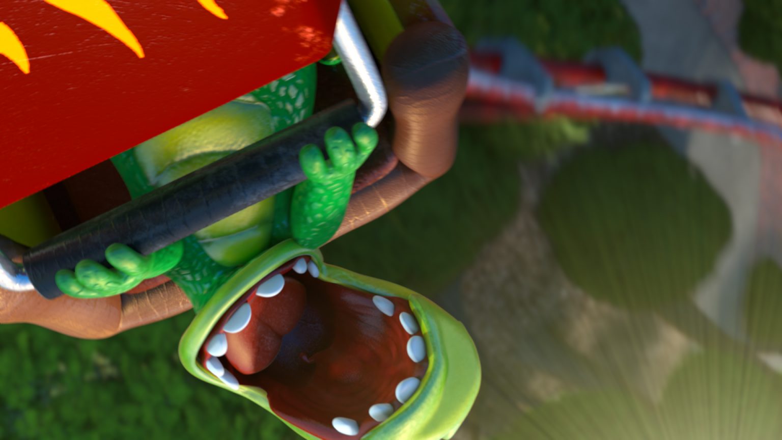 Plato the dinosaur adventures out to a theme park in one of four CG animated Publix spots.