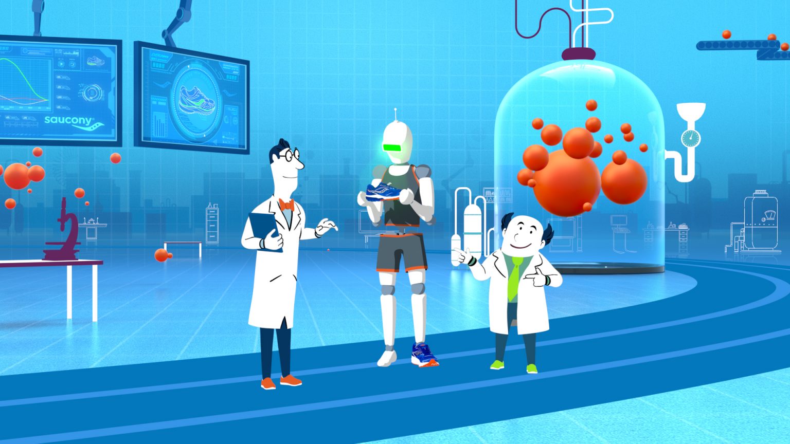 Even the Saucony Labs can’t contain this new spot! NL continues Saucony’s animated campaign with Max, Miles, and the Runbot to showcase a brand new running shoe.